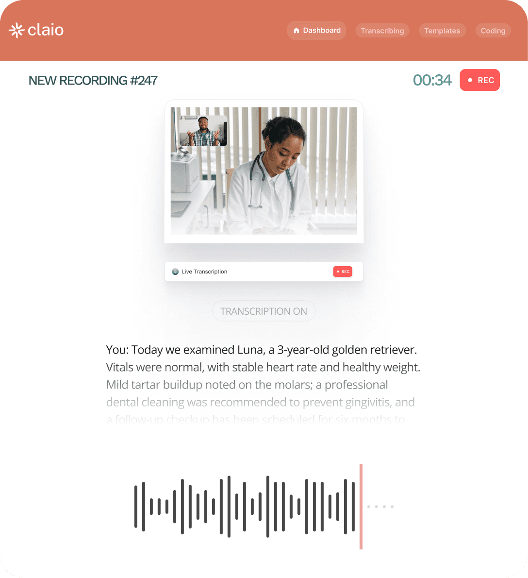 Speak naturally during your appointment while Claio captures every detail.